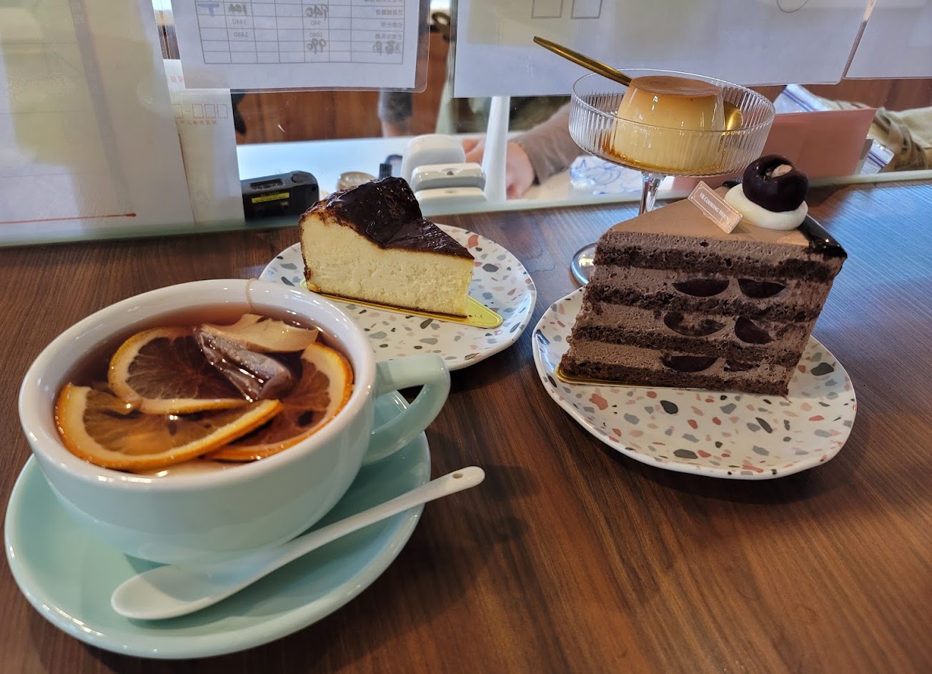 蛋糕都非常有特色且美味,個人特別喜歡櫻桃巧克力、紅茶布蕾、鐵觀音芝麻、千層、雙色巴斯克乳酪抹茶還有布丁,熱茶跟咖啡偏濃郁又吃蛋糕會太膩,冰的酸甜果茶較適合搭配蛋糕而且還蠻好喝的,店員服務親切熱情,環境整潔舒適,更有二樓的寬敞藝術空間座位。