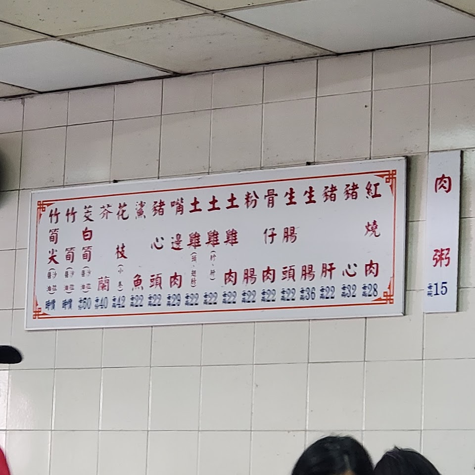 星期日去大排長龍,點餐規則不明,詢問又被兇回來,可能生意太好,店家與送菜人員態度真的不好,菜單皆未註明單價,填完幾項又告知是以人數配菜!!?肉粥是便宜好吃,但吃起來應該算泡飯吧.當日點了紅燒肉和粉腸。小卷.冷筍沙拉,口味不錯粉腸有點可怕,菜錢510在北部價格算還OK,但不會想去第二次。。。