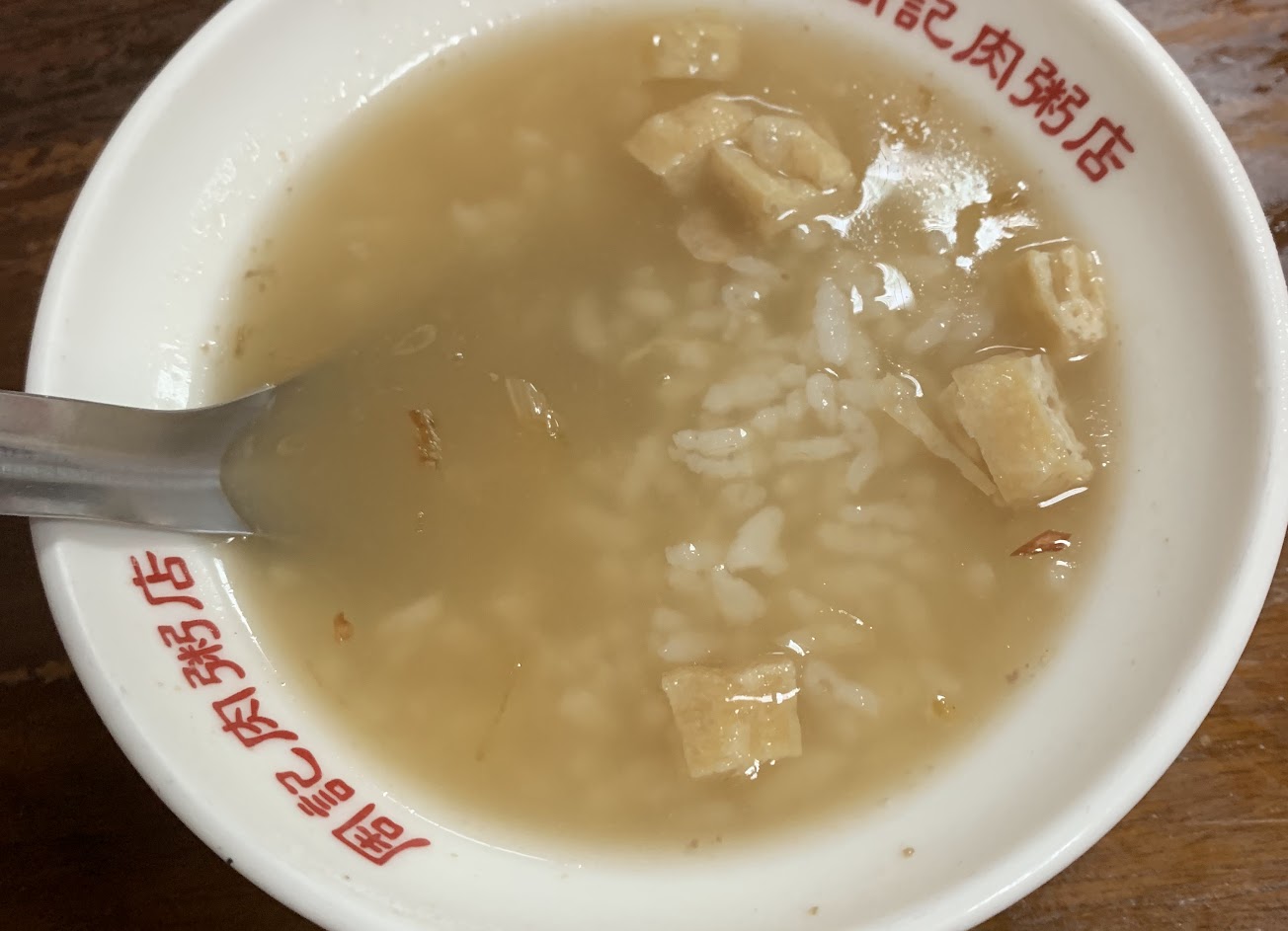 肉粥吸附著湯汁,配上小塊肉羹、豆皮,比泡飯更入味。
