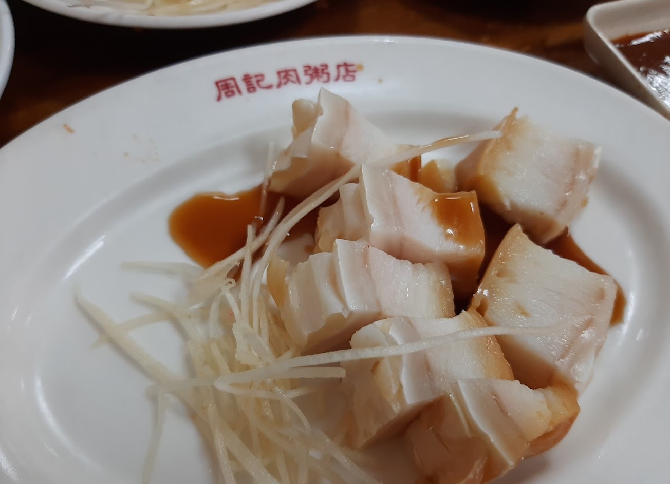 周記肉粥讓我覺得很厲害的是,除了慕名而來的觀光客,最多用餐的是本地老客人,肉粥每人基本都是2-4碗的在點(不誇張有附圖),必點的是充滿肉香的肉粥和紅燒肉,超多人都是切一盤紅燒肉加肉粥(一個人也是這樣點),但價格不是很透明,初次照訪可能要詢問清楚價格再點,避免爭議。