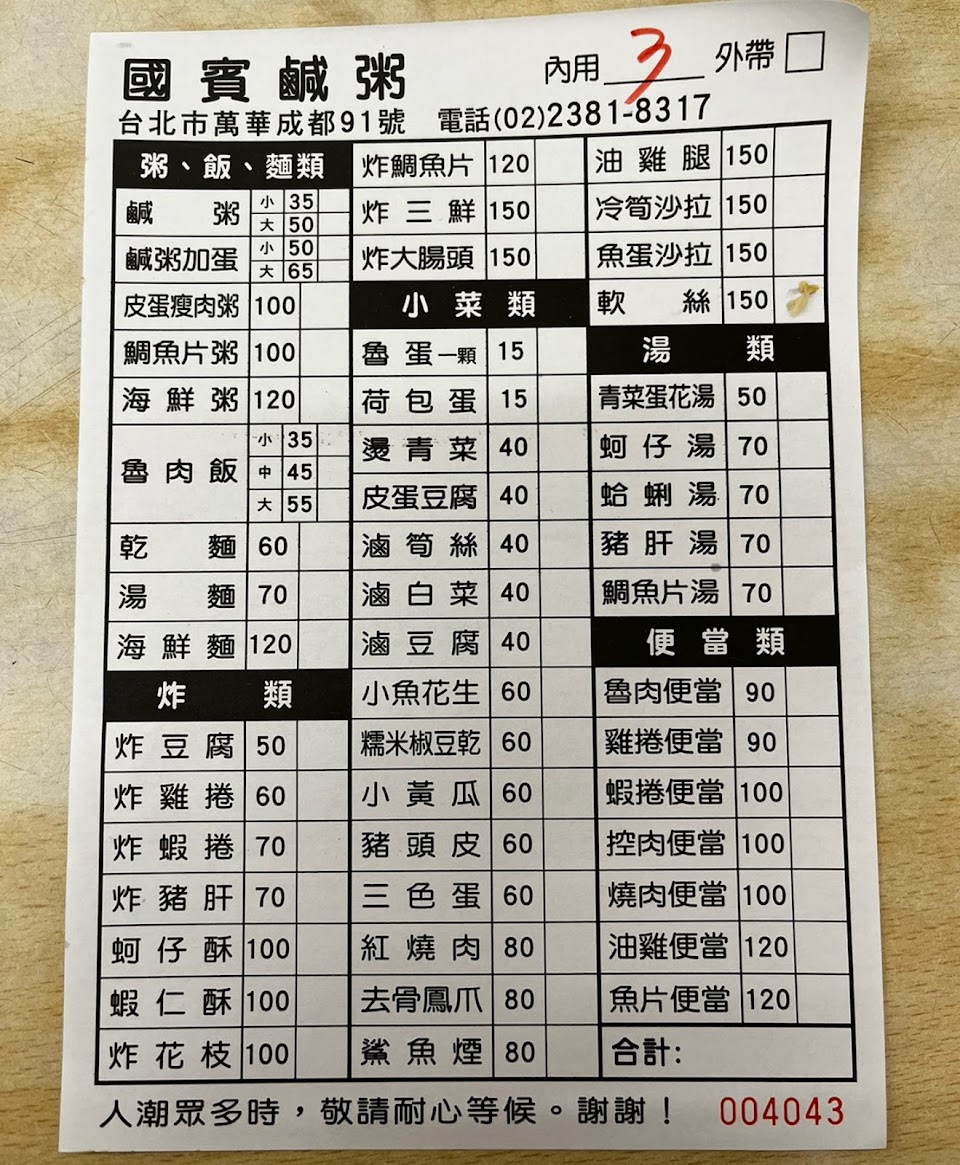 東西沒很多但鹹粥蠻好吃的,有種懷念的感覺 服務 內用 餐點類型 晚餐