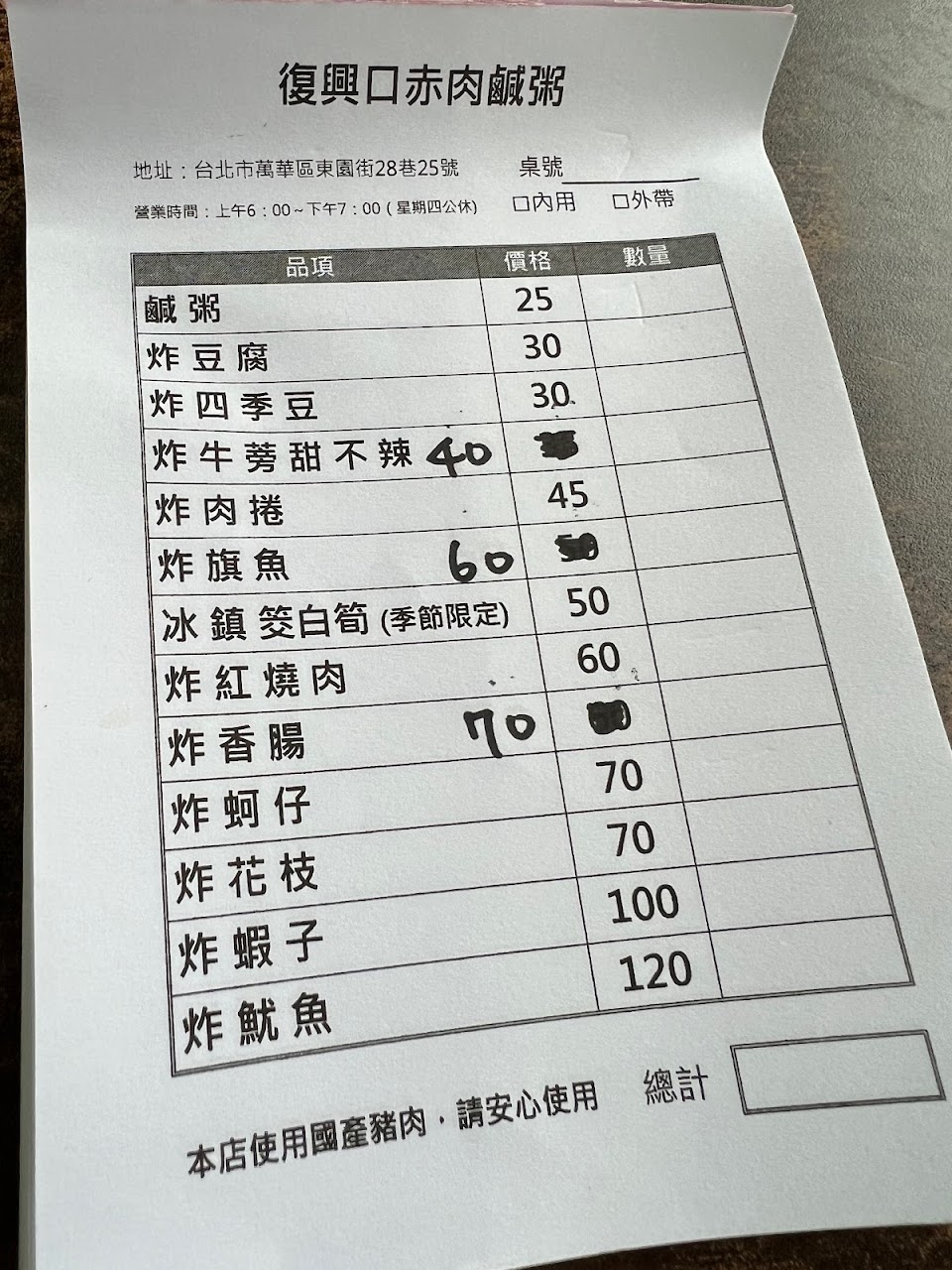 2024最新在地推薦餐廳的菜單_復興口 赤肉鹹粥的菜單、圖片