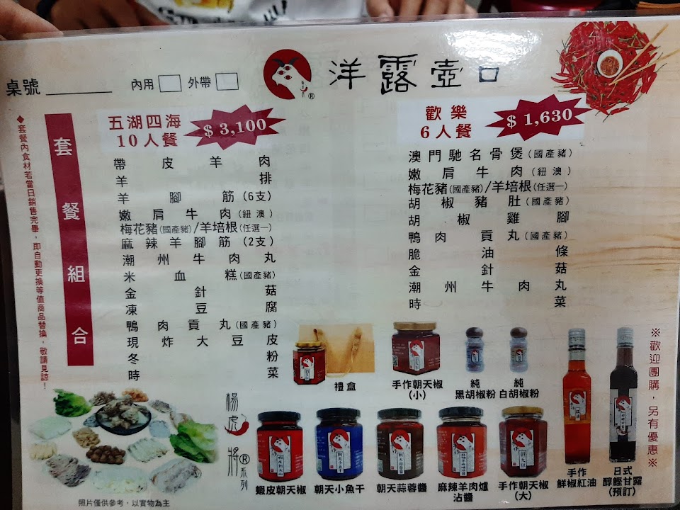 以1250一個帶皮羊肉套餐的話,