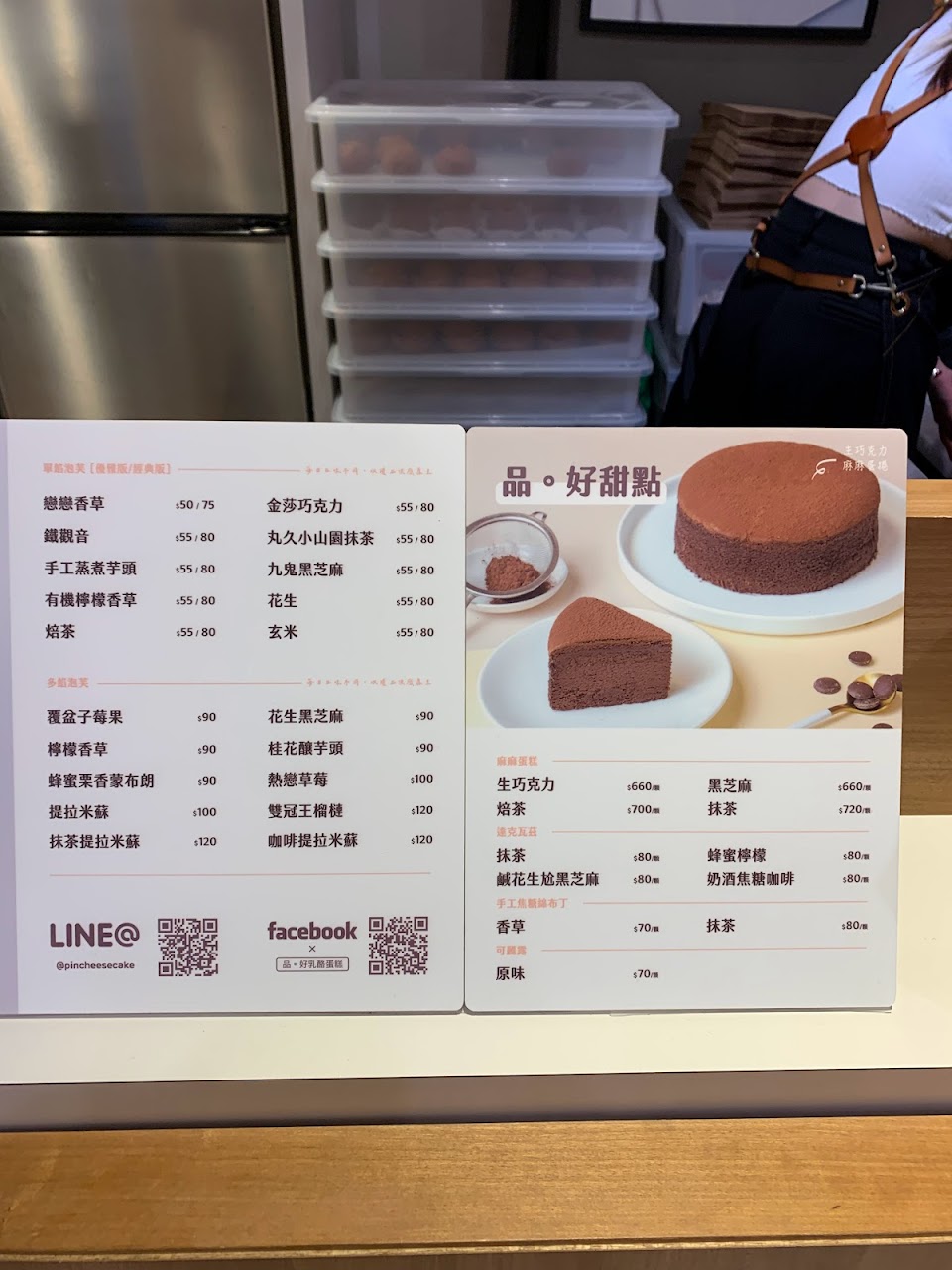 2023/01/04 剛好在漲價前購買 買了派對組合 內有四種口味的乳酪蛋糕 個人喜愛順序為莓果>原味>抹茶>cacao巧克力 但都很好吃~ 店員還送了四隻可愛的聖誕巧克力棒棒糖 很棒?