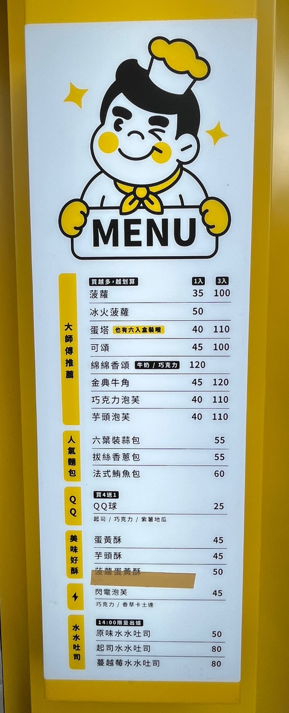 第一次吃到就愛上了,已經回購很多次,感受師傅用料很實在,不愧是大師傅,他們家除了主打蛋塔之外,有QQ球,Q彈有飽足感,強調多水土司也很大推,不愛土司的我,即使放到隔夜都還是軟嫩,尤其最近製作的中秋月餅,實在不亞於知名品牌的口感,推推推大推? …