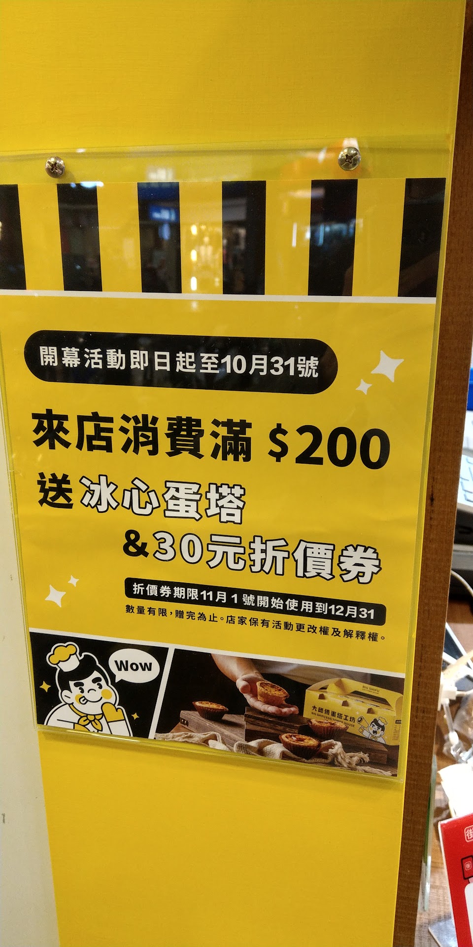 招牌的顏色黃色實在很吸睛! 外觀的Logo設計就讓人想走前上去瞧瞧兩眼 原來是新開的甜點店! 一口氣買了六顆蛋塔 、丹麥巧克力、冰火菠蘿、巧克力蛋糕 喜歡丹麥層層的口感,裡面包卡士達跟巧克力餡料!蛋塔整體很厚實~實在是大大滿足~~