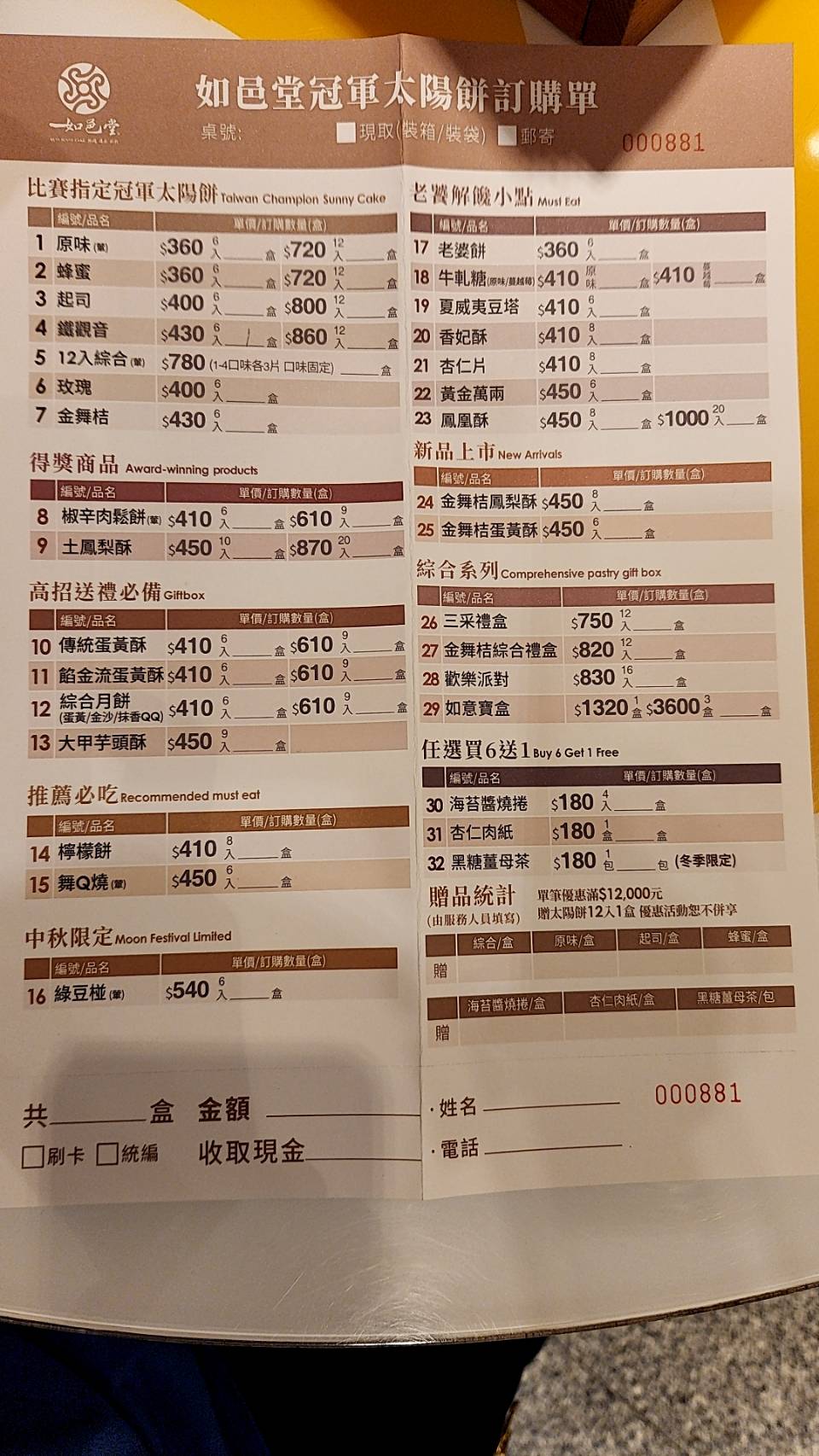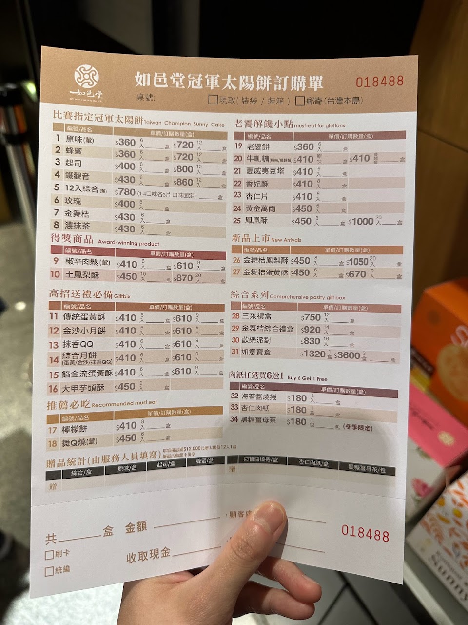 到店會有一個太陽餅可以試吃。太陽餅沒有單賣,最少6個一盒,可刷卡、LINEPAY、街口