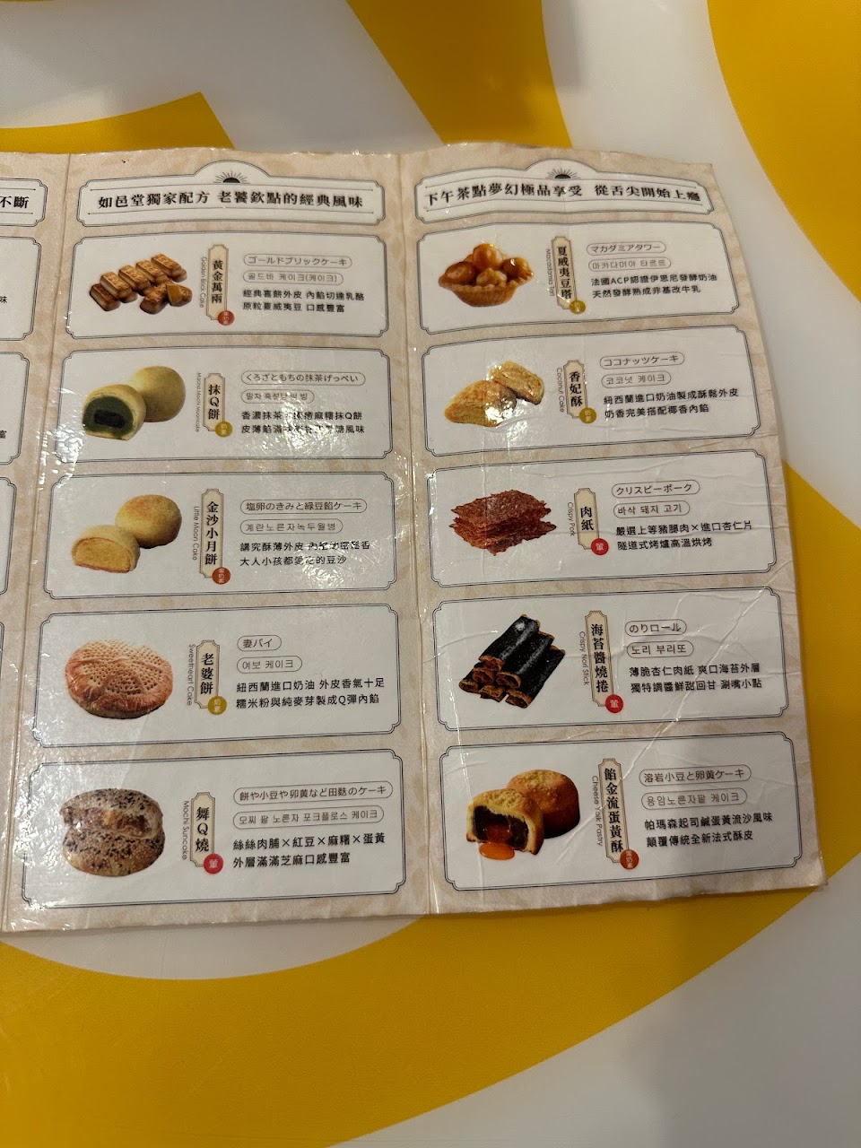 這家傳統糕點製造商以銷售台北最暢銷的太陽餅之一而聞名。有原味、芝士、鐵觀音等12種口味。太陽餅不會太甜,餅皮很酥。每塊太陽餅的成本約為2.50美元,相當昂貴。