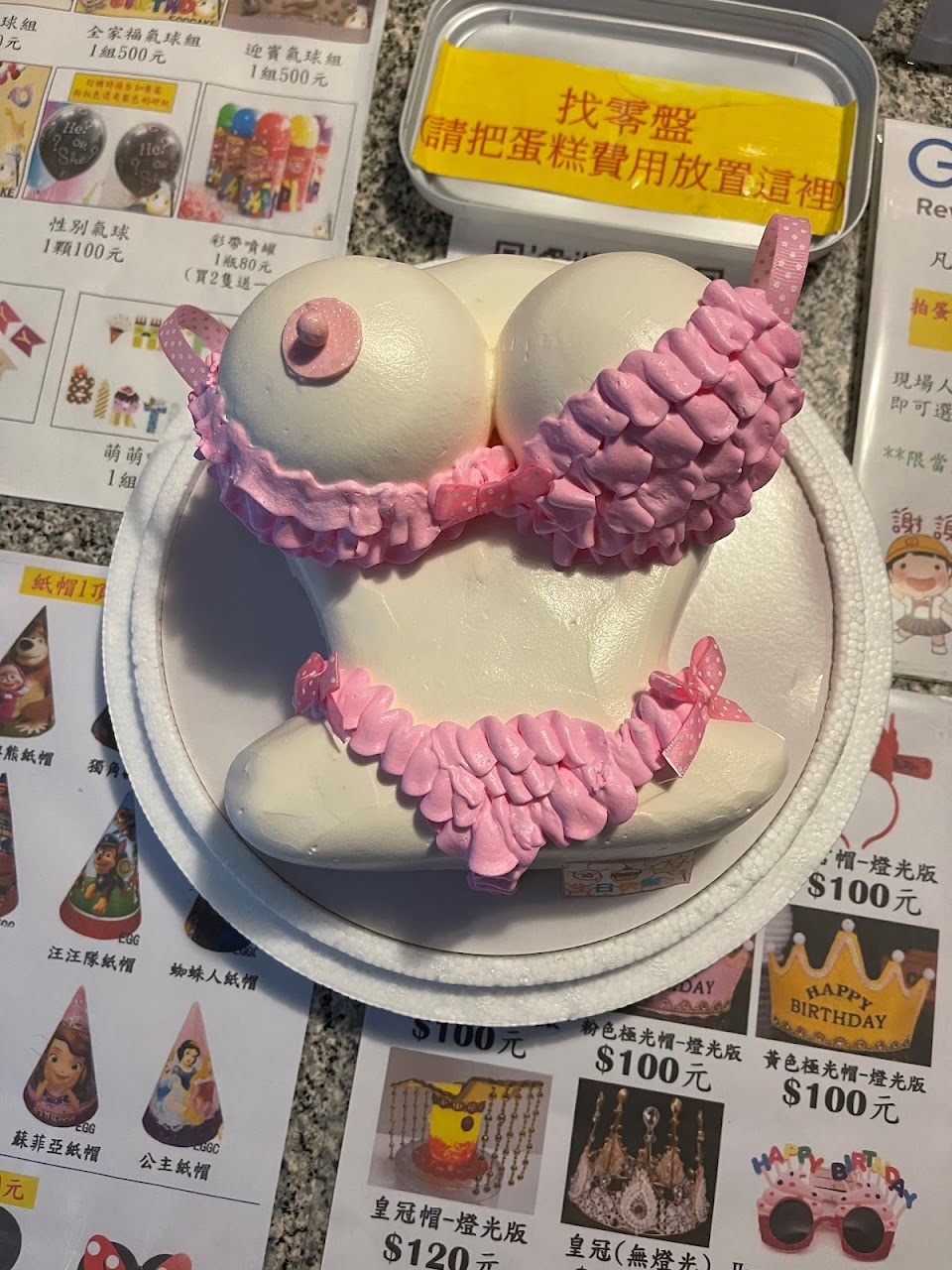 但我訂做的是抽鈔蛋糕,不太好拉,整個卡住,壽星才拉第一張就拉不起來,結果蛋糕直接解體~蠻失望的