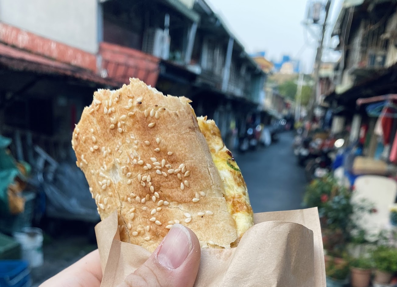麵團捲入大量蔥油,在桶內膨脹焦黃,側面剪開後一陣麥香蒸氣噴湧,夾蛋後美好,尺寸友善。