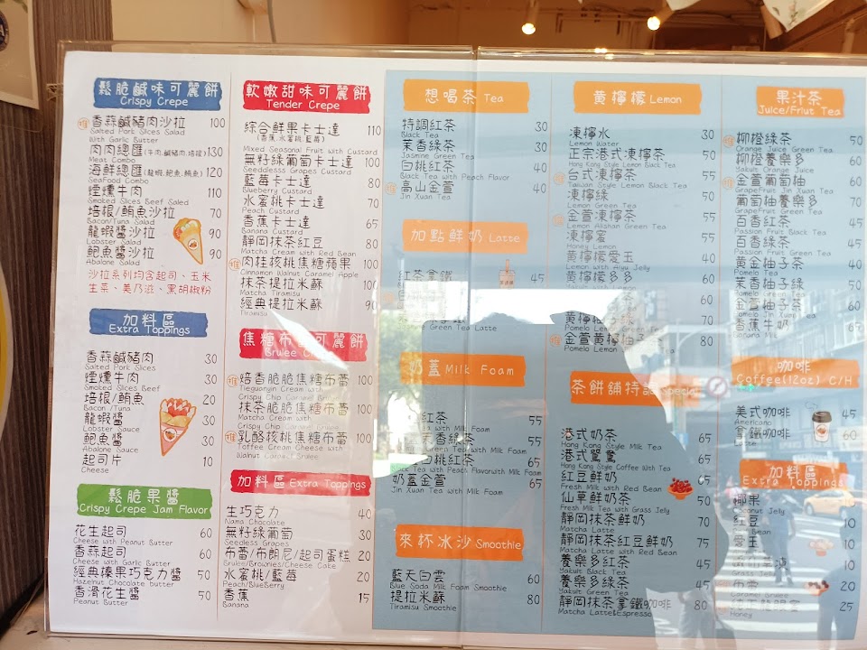 店面小,但明亮乾淨,旁邊有四個內用座位,桌上還有自製的太妃糖醬給客人自由添加,飲料和可麗餅口味選擇多又好吃,店家還讓客人試吃看看奶茶的珍珠是否夠甜,服務真誠親切?,會想再去光臨 …