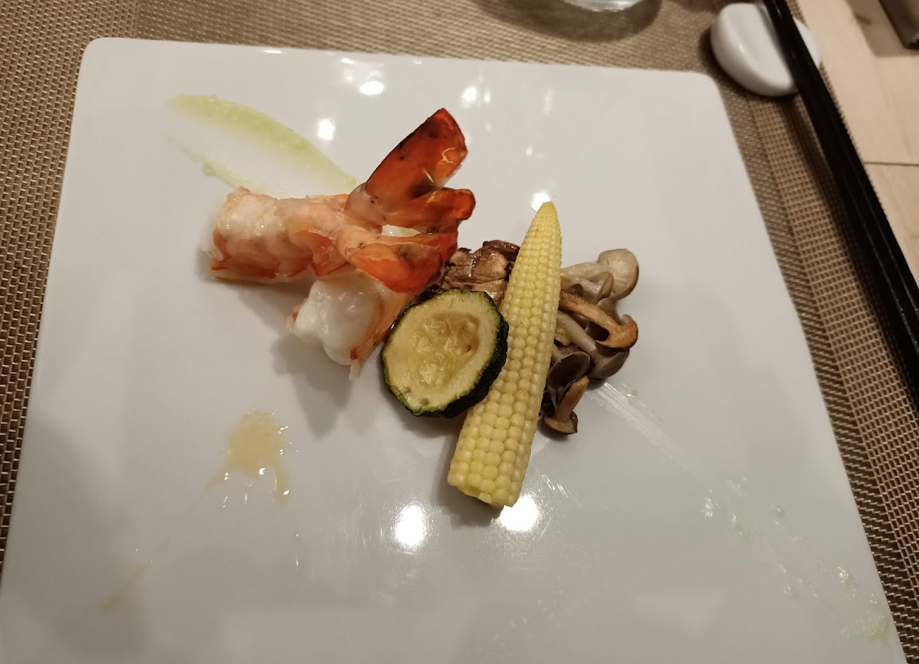 雖然店面不大,但用餐很舒適。上菜的速度也控制得很好。每道菜都很令人喜愛,不論是開胃菜的馬鈴薯沙拉,中間的龍蝦排,鵝肝,和牛;或是最後的牛肉漢堡排,炒飯,都讓人覺得很享受。