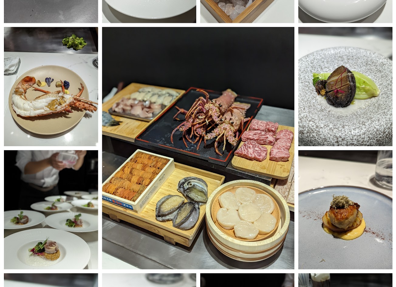 海鮮非常的新鮮,龍蝦還是活跳跳的,主廚會詳細介紹每一道菜,道道都是精緻漂亮的餐點,而且驚喜不斷,我們有加點龍蝦,熟度非常剛好不硬不柴,非常的好吃,每到菜雖然都ㄧ點點、吃完10道也是非常飽!大推唷!