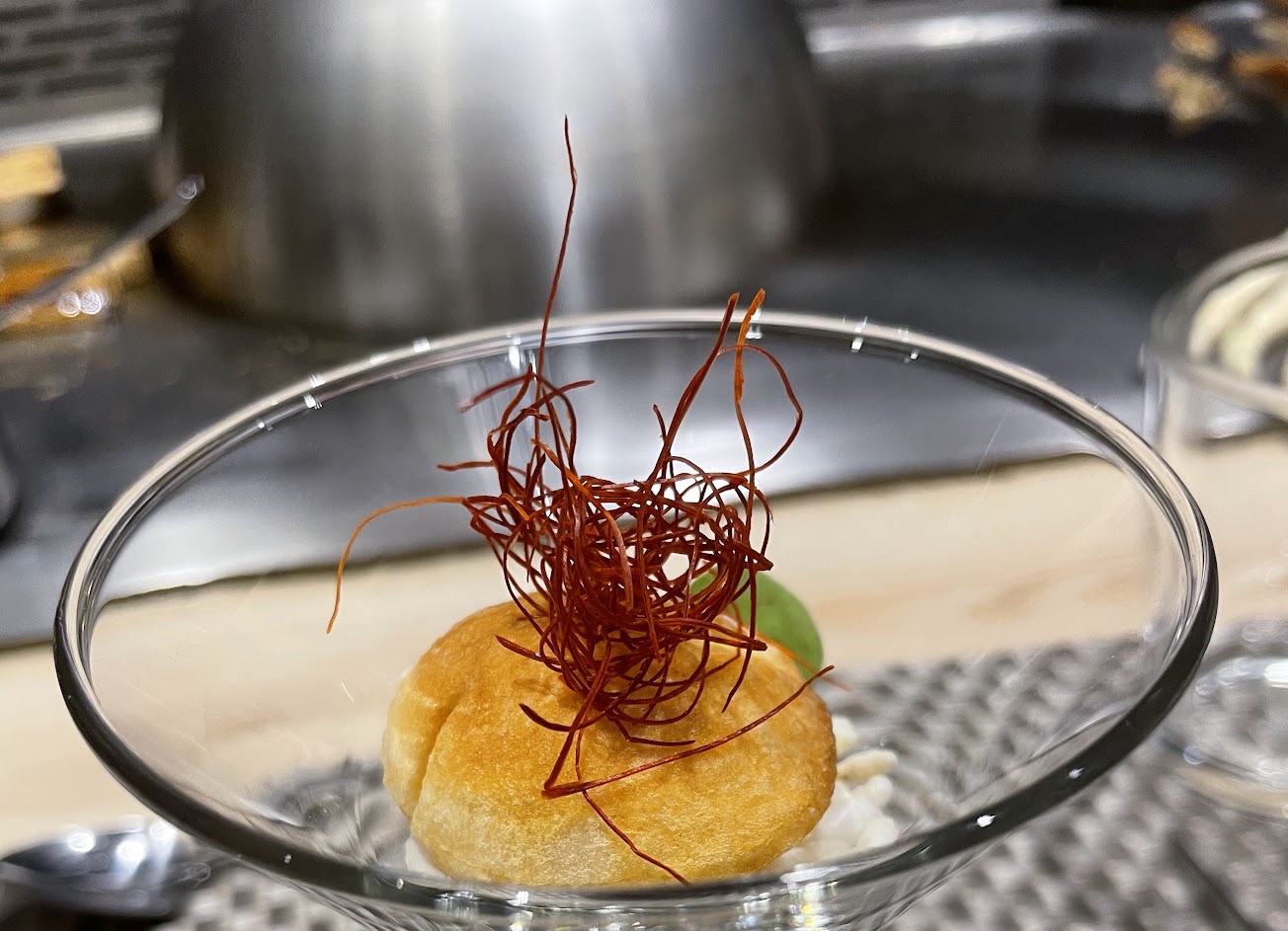 鐵 F.f Teppanyaki是一家法式的鐵板燒料理店,近年來越來越盛行無菜單的料理,像我最愛的日式無菜單,在雙北也越來越多了,這代表…我口袋會越來越空? 然後肚子越來越腫? 法式鐵板燒運用很多分子料理手法,平常真的很少接觸到什麼叫做分子料理,這邊幫大家腦補一下➡️分子料理(Molecular Gastronomy),是一種從製作方式、外觀形態、食物口感等方面進行技術上的革命,改變食物原本應有的面貌。舉個例子:我們常見的醬汁都是液體型態,但分子料理手法可以透過特殊的設備,將液體打成泡沫,以泡沫的形狀呈現再與食材進行搭配,其口感又加具有層次感受~?