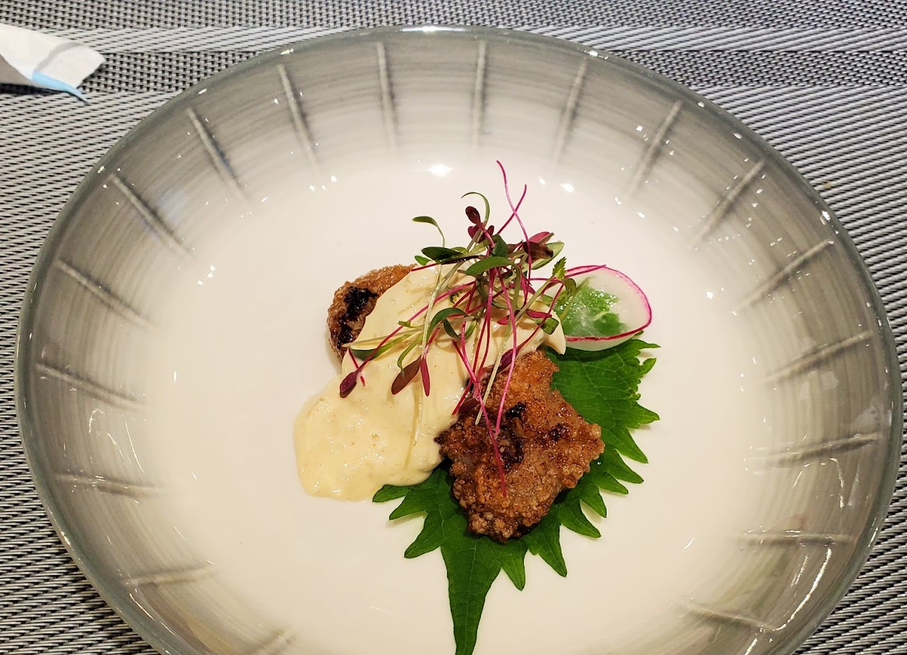 ?生蠔:煎得剛好,還有一點湯汁,配洋蔥塔塔醬好吃,用紫蘇捲起來更好吃