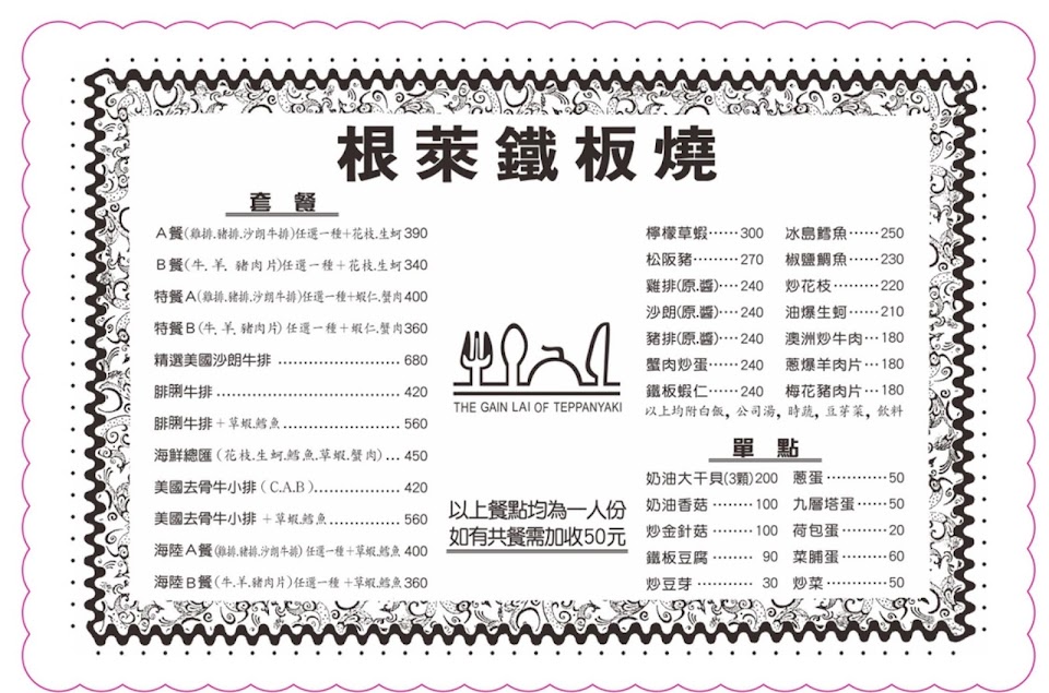 2024最新在地推薦餐廳的菜單_根萊鐵板燒的菜單、圖片