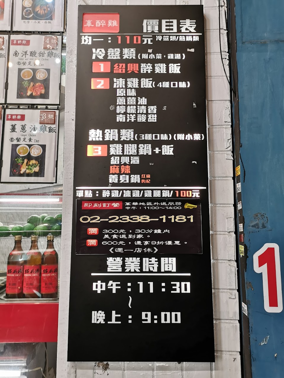 從開幕吃到現在,價格實惠又很好吃,如果天氣不熱的話值得停下來在騎樓吃一份醉雞套餐(開車的人也有其他口味可挑、天冷也有熱的套餐,目前試了三四種口味沒踩過雷)。 一份套餐包含雞腿、白飯、小菜和雞湯,如果湯喝不夠的時候老闆可能願意幫客人續杯唷~(但別太貪心啦) 外帶外送好像也都可以,可以再問老闆。