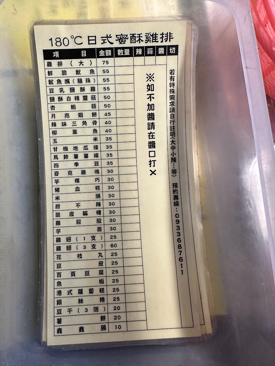 務必聽網友的話打電話訂餐後再過去取餐,炸到澎澎的甜不辣,口感好特別,超級推薦,雞排、鮮脆魷魚、雞翅,炸過再沾上特製醬汁,口感更加分,豆乳鹹酥雞,鮮嫩好吃,整體而言非常推薦的炸物店,經過別錯過 ??