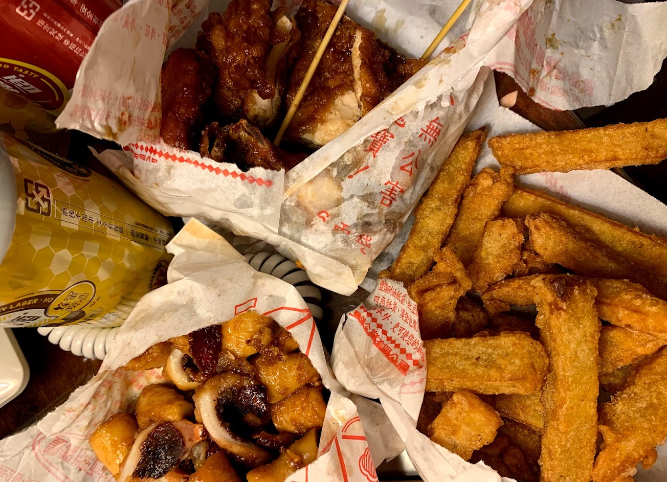 失之東隅收之桑榆,永富冰淇淋沒開卻發現這家古早炸雞店,門口人不多但椅子卻不少。三位媽媽掌廚。 原來多是電話預訂的人…內行人聰明人呀,所以現場等了一個小時。 鹹酥雞 地瓜 魷魚 …刷醬 糯米腸 …刷醬 甜不辣 以上 都好吃! 會再訪的,下回見。