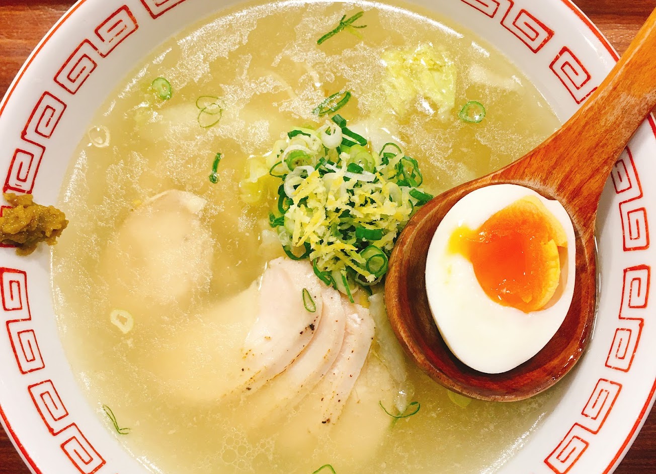 湯頭是雞清湯整體偏接近死鹹的鹹,雞肉是中規中矩的舒肥雞,最推的是糖心蛋,有淡淡的酒香。