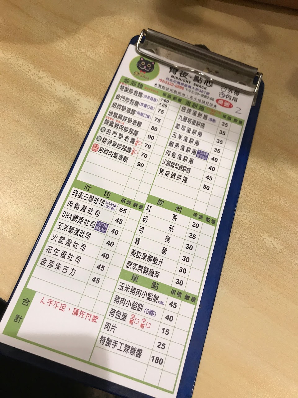 點了招牌炒泡麵、地獄辣椒炒泡麵跟九層塔蛋餅