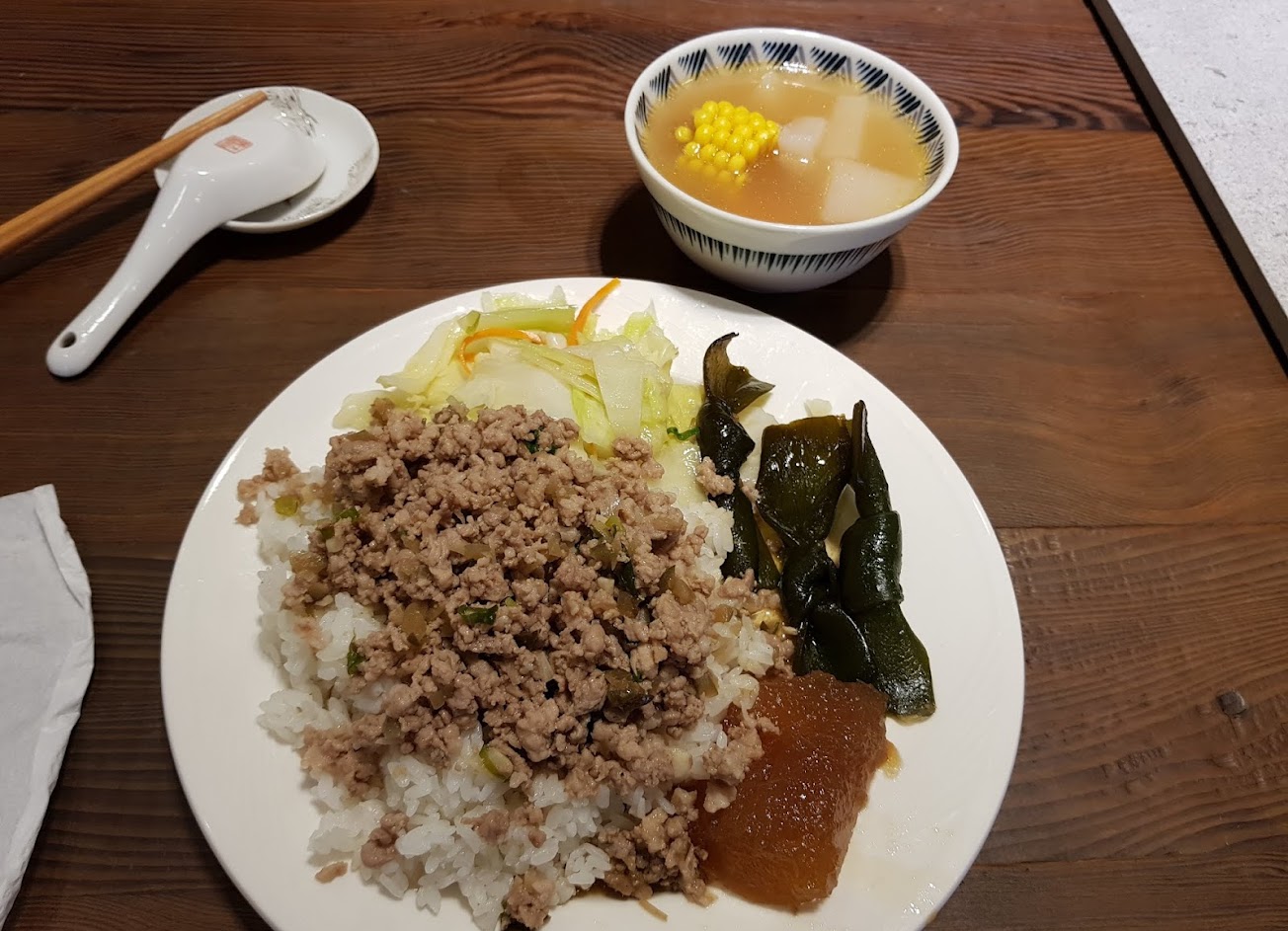 店家會提供木頭筷子和一杯麥茶,口味佳。