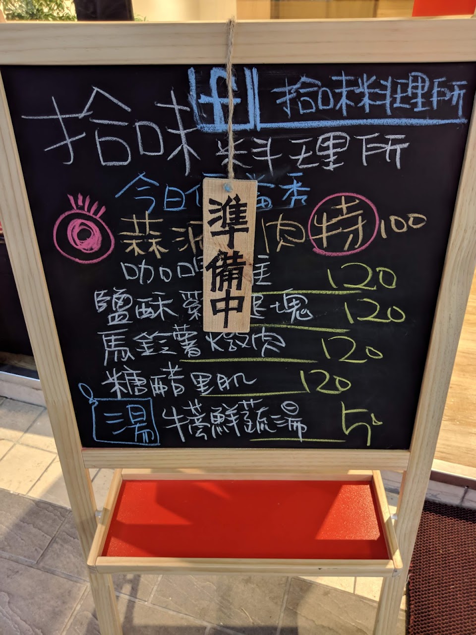 菜單選項單純(主菜+飯+四五道菜),但每天菜色不同(粉絲團當日公布),固定有一個特惠口味,和四種其他口味選擇。