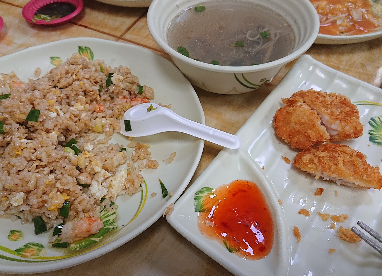 炒蚵仔麵線、蛤蜊湯、蝦仁炒麵、蝦仁煎都蠻平價又大碗,重點是環境乾淨整潔,室內又有冷氣