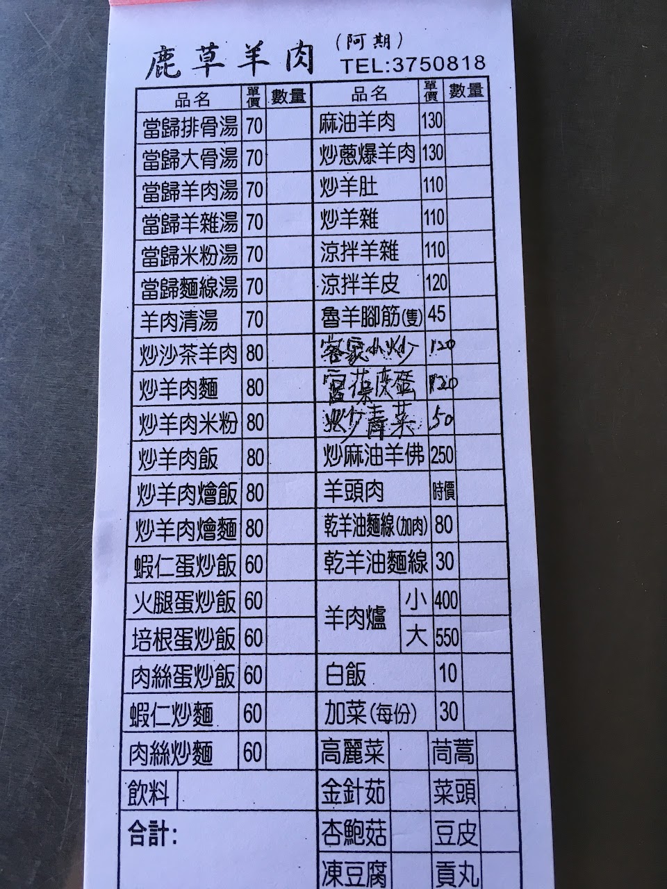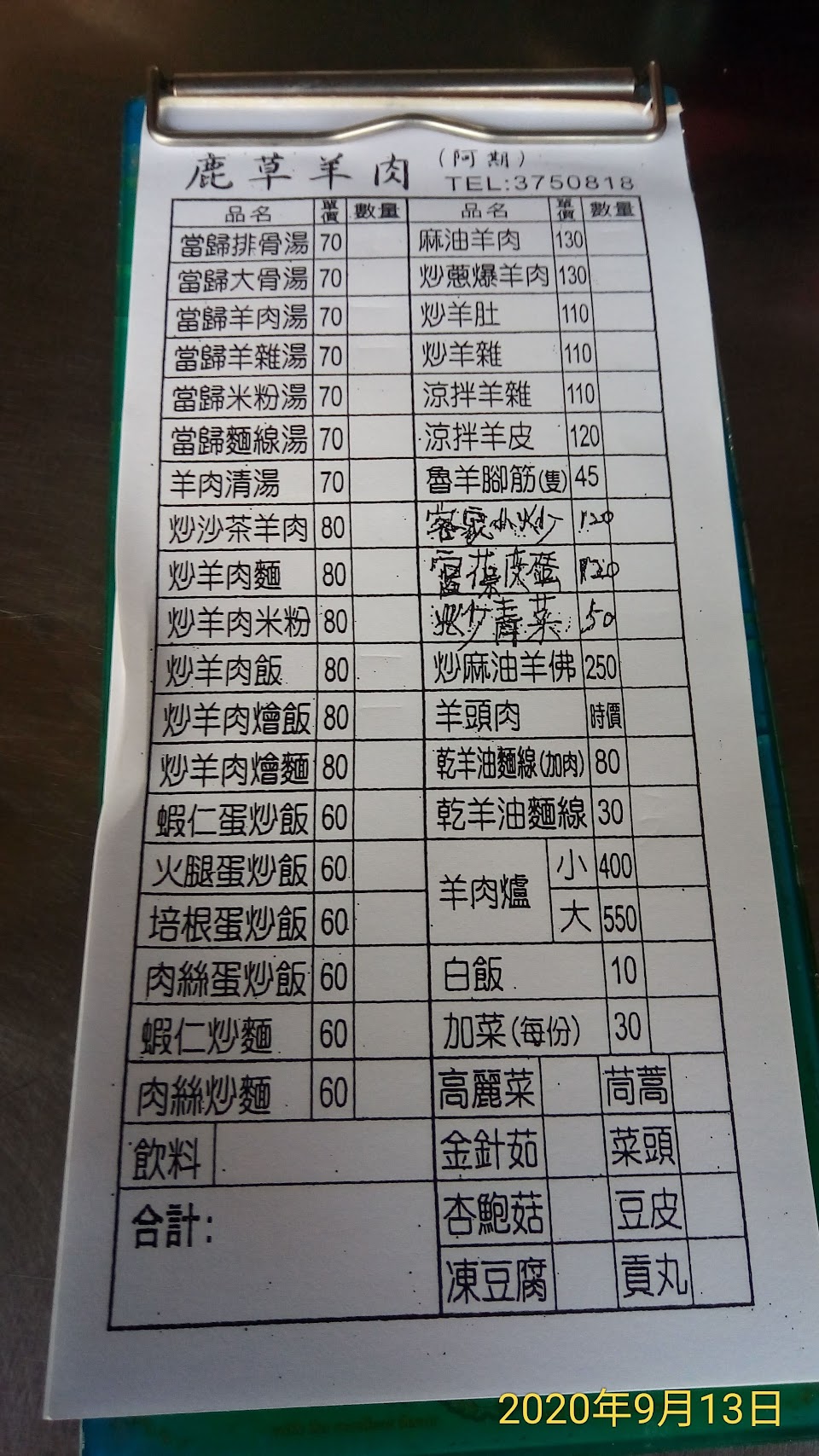 2024最新在地推薦餐廳的菜單_鹿草阿期羊肉的菜單、圖片