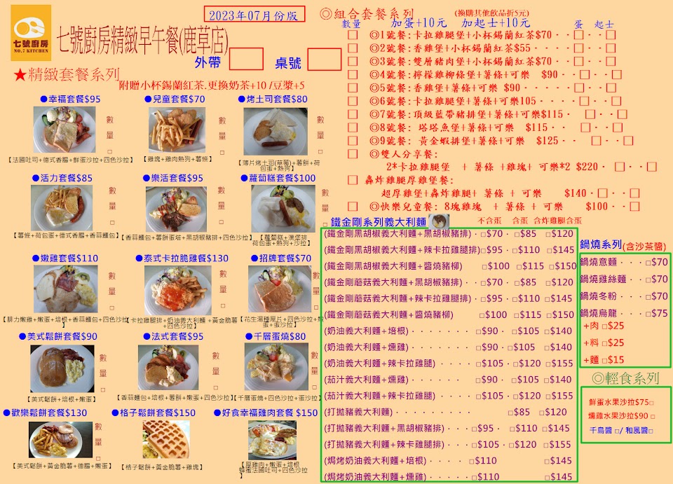 2024最新在地推薦餐廳的菜單_七號廚房精緻早午餐-鹿草店的菜單、圖片