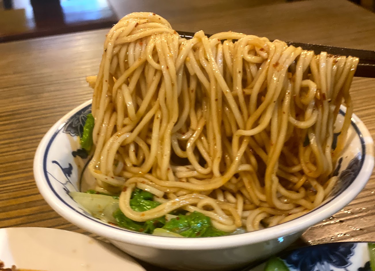 麻醬麵味道濃郁香醇,非常順口的一口接一口,不會吃得口乾舌燥相當棒,但排骨麵的排骨炸得太硬了又乾又柴。滷豆干是用大塊的手工豆干去切非常入味,花干更是經典美味,還有椒麻雞香而不辣且軟嫩好入口。不過整體價位都偏高,尤其是麻醬麵小碗要70元,份量也跟一般麵店差不多,其他價格也不容小覷。