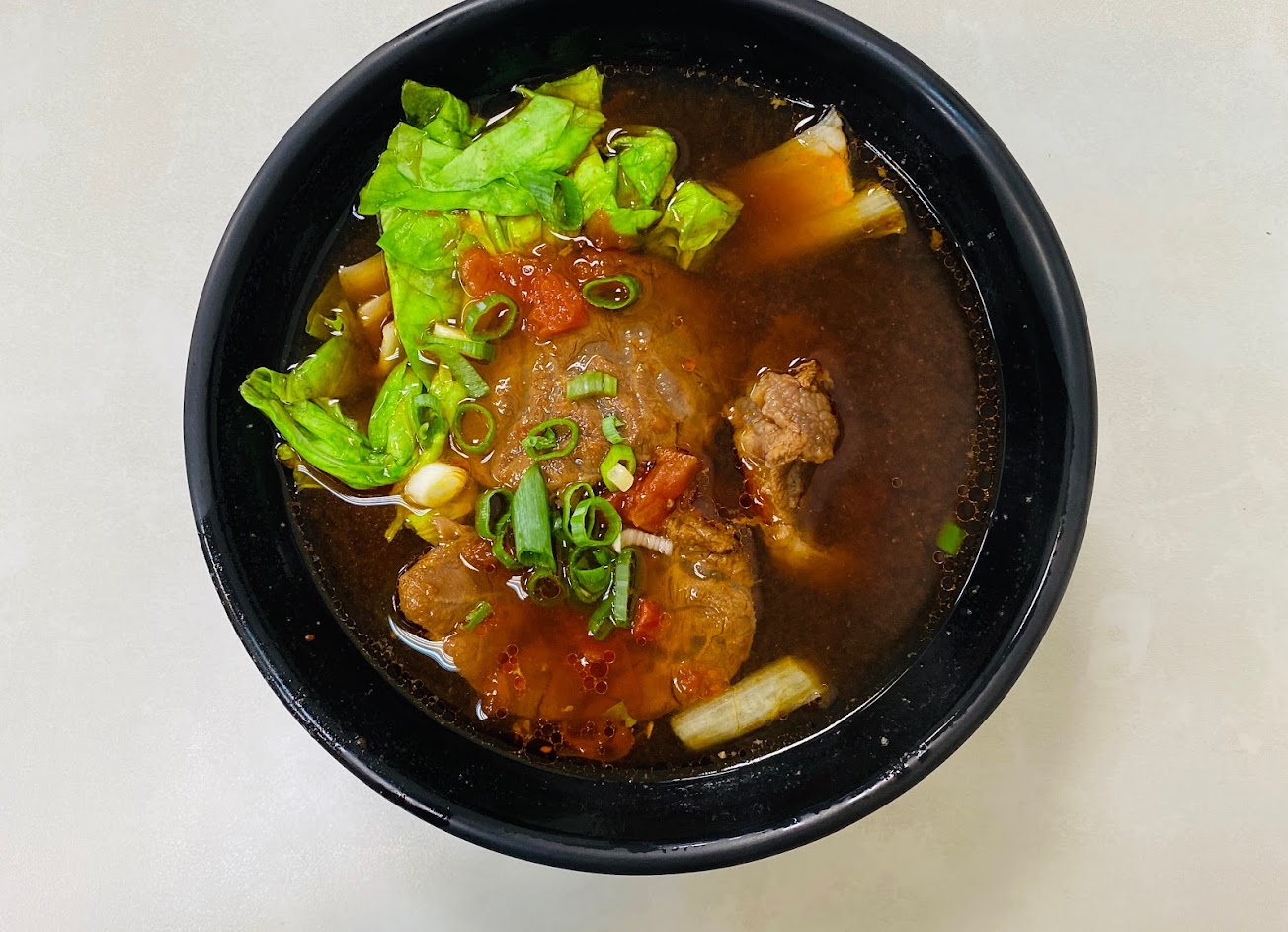 刀削麵有嚼勁(但如果更有嚼勁更棒)番茄湯底好吃不會太油,但牛肉過柴不好入口
