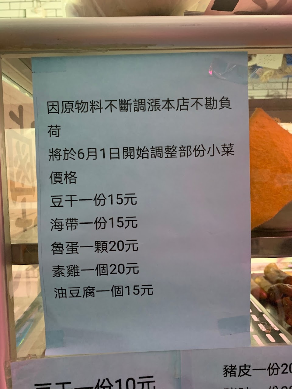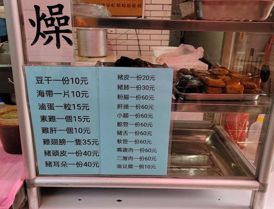 滷菜類除基本的豆製品外,亦有內臟類及肝連等常見肉類,除肉類外小菜價位低CP值高。