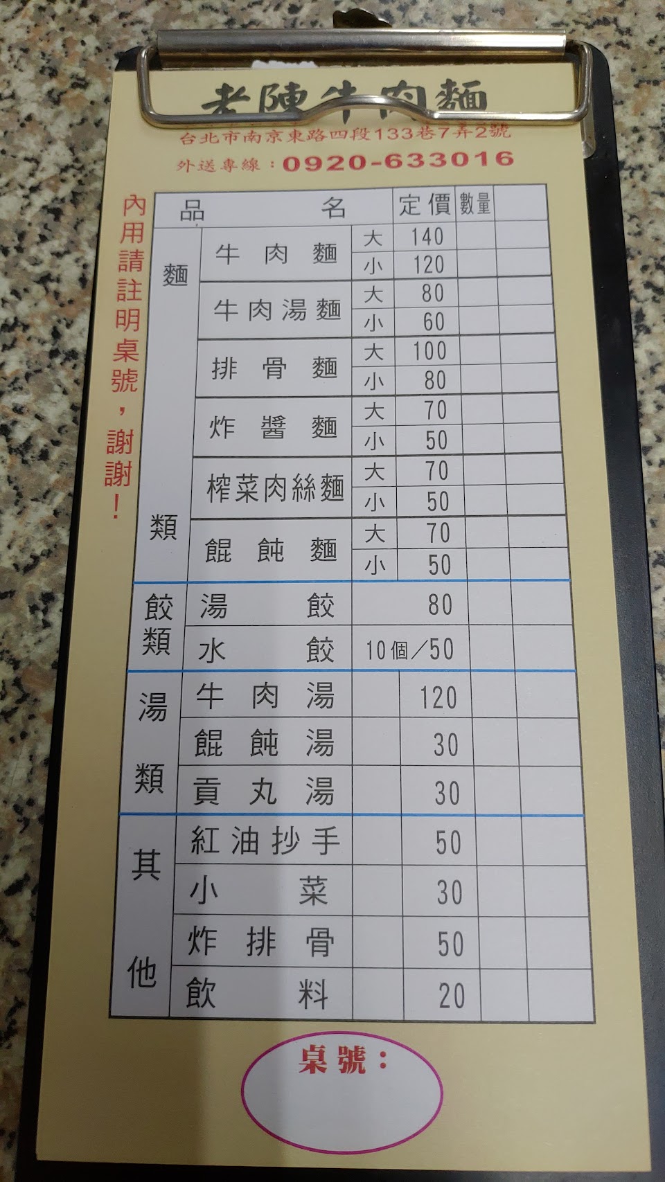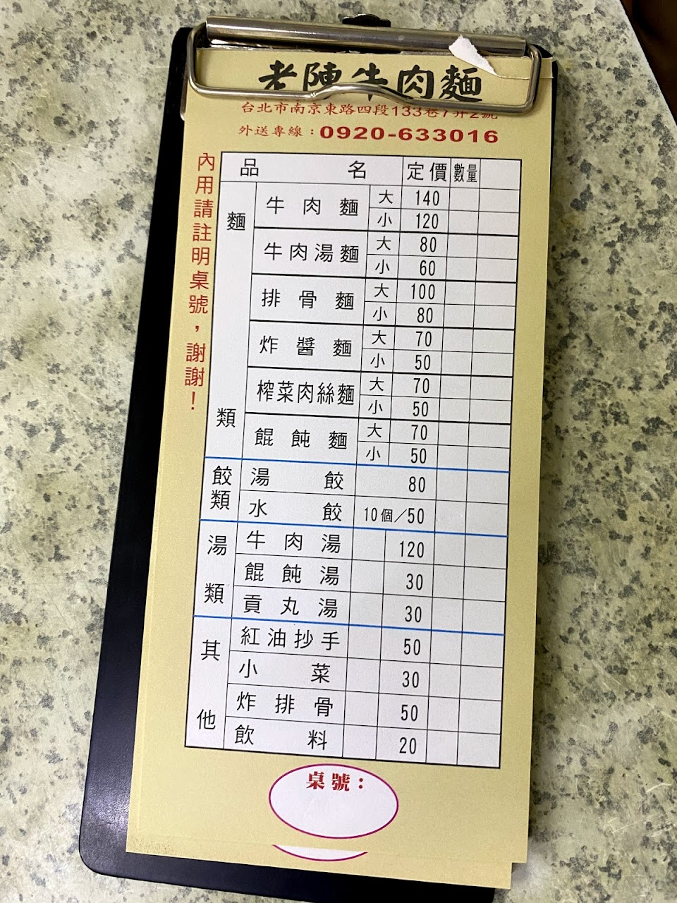 2024最新在地推薦餐廳的菜單_正宗老陳牛肉麵的菜單、圖片