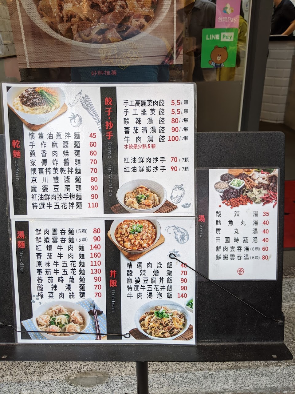 菜單上的大都點選過,目前沒有踩到雷,拌麵和飯類都有很剛好的醬汁,水餃和餛飩約比半年前小了一點點,蕃茄牛肉麵湯頭可以再濃郁會更好。