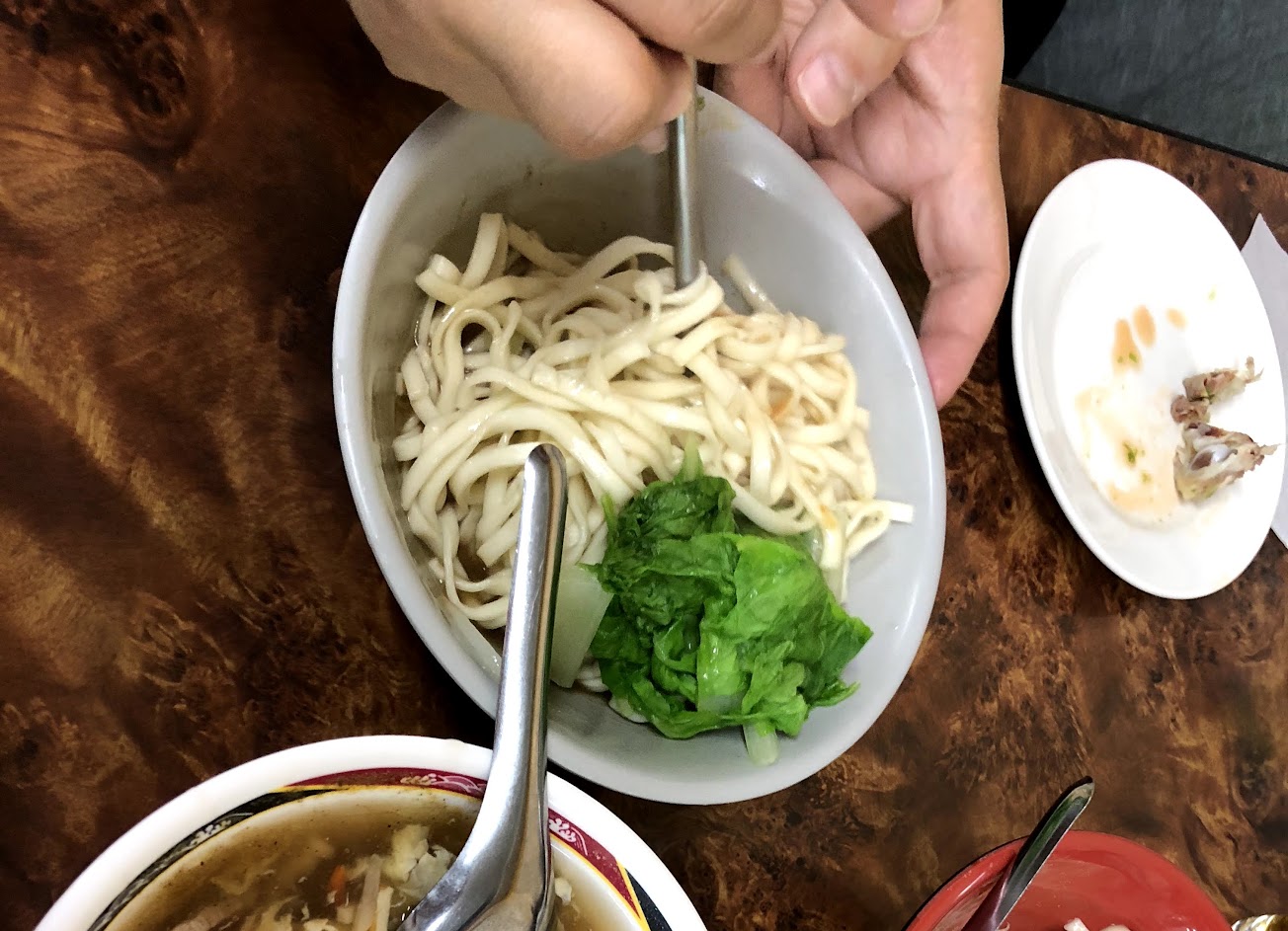 八德路監理所對面巷子,每年來驗車時固定品嚐,牛肉湯、怪味雞、滷味拼盤,口味都不錯。忍不住點了一碗小龍乾拌麵,久違的澱粉滋味。