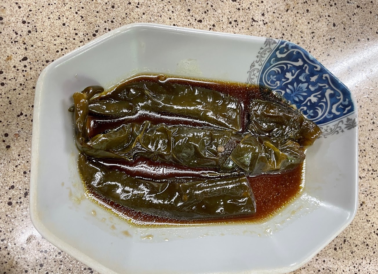 一家外觀看起不怎麼樣的店,卻是我喜歡的店,我絕對不是已貌取店的人,這家店的招牌非怪味雞莫屬,平凡的雞肉上面蓋著一層綠藻,淋上老闆特調香辣油,有一點點的香油、一點點微辣的辣油、一點點花椒香氣的花椒油組合而成,微微的鹹酸躲在綠藻上,雞肉、綠藻、香辣油配合的天衣無縫,能同時被吃完又不會揮之不去,有達成我小小的要求。