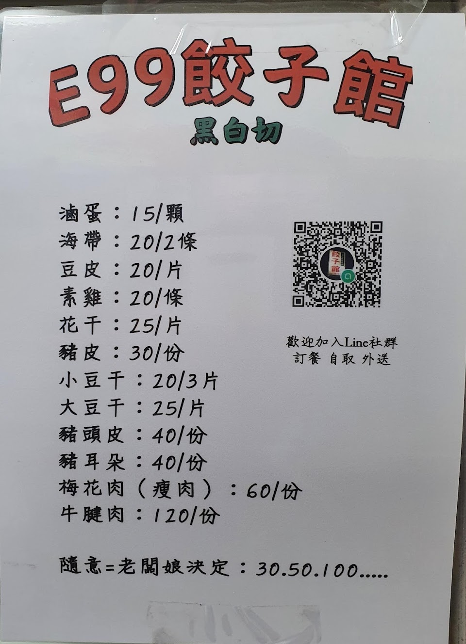 2024最新在地推薦餐廳的菜單_E99餃子館的菜單、圖片