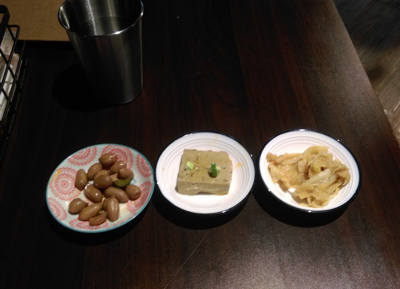 雙腳飯味道還可以,份量足夠,但豬腳沒有熱,附湯的丸子沒煮透;雙腳麵味道不錯,但份量很少,附加的茶好喝;小菜拼盤品管稍微不優。