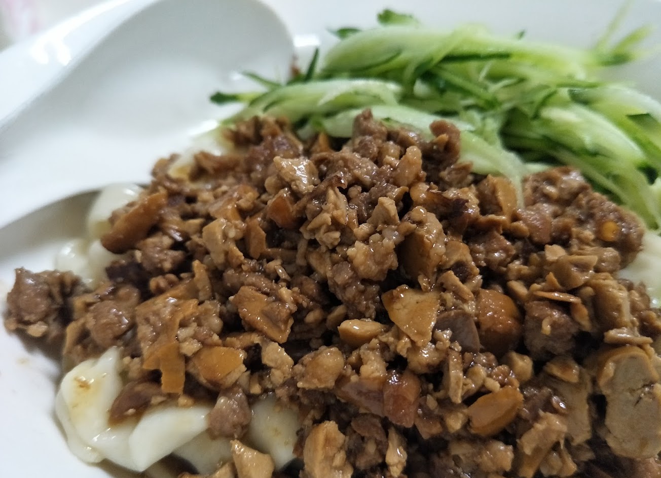 夠咬勁的麵體。有肉末、豆干的炸醬夠味且偏醬油鹹味。加到爽的酸菜不鹹口的,很有誠意呦!海帶、豆干炒小魚乾小菜則表現中規中矩。可惜就是用餐環境老舊了點、桌與桌間距少了點。