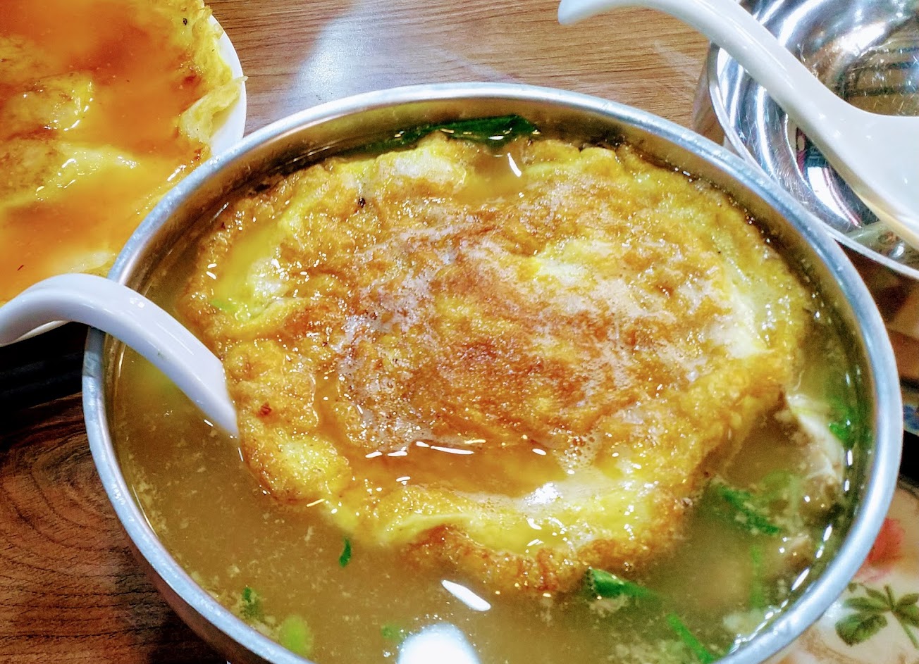 雞湯麵條是細拉麵,很Q彈,烘蛋很香,雞湯淡淡的,還不錯。