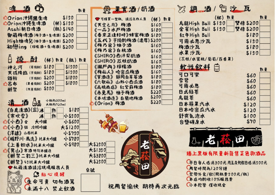 2024最新在地推薦餐廳的菜單_老菘田居酒屋(串燒‧酒場) 南京店的菜單、圖片
