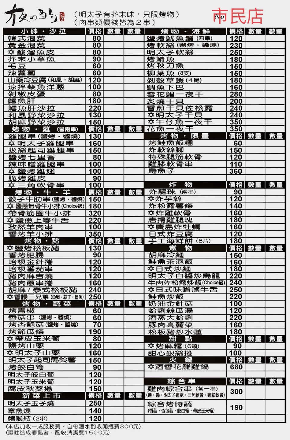 2024最新在地推薦餐廳的菜單_夜酌居酒屋 市民店 東區居酒屋 寵物友善的菜單、圖片