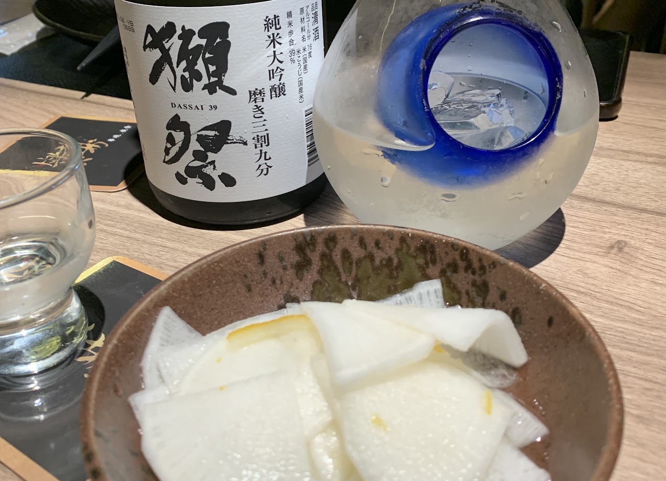 本來要給5年顆星,但是點獺祭45結果送來是三割九,當下有詢問是否送錯了,結果是45沒有了。但是菜單上為何還是可以點,店家其實應該先向客人說明,而不是客人發現後再解釋 。畢竟是3位消費超過4千元以上的店家!