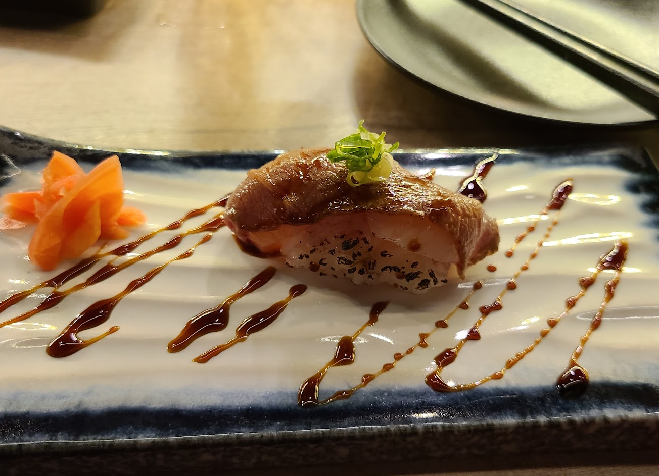 然後一個海膽干貝和牛壽司小小一個賣400塊,