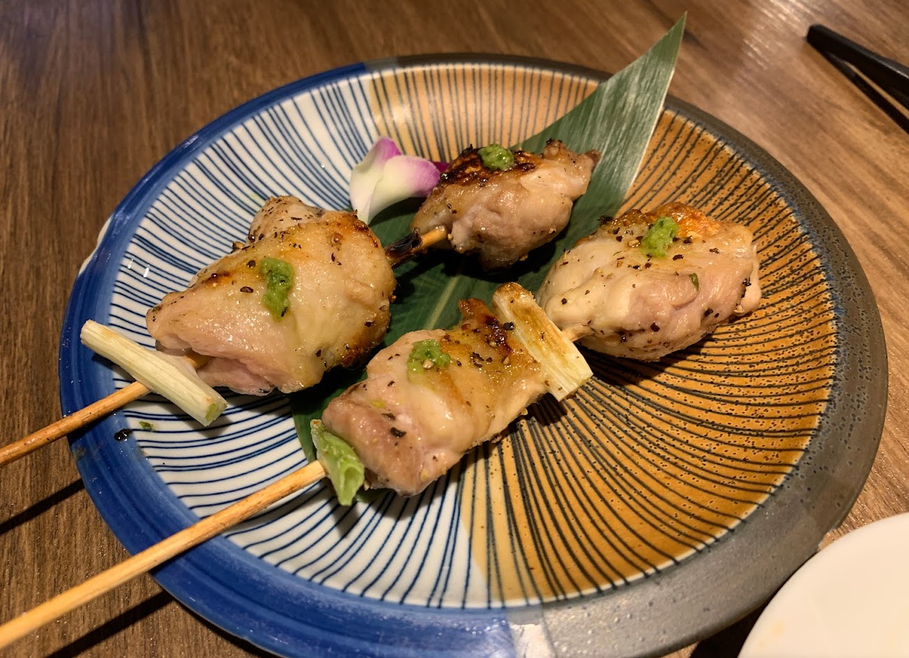 招牌四方雞蔥串 (少數肉質維持軟嫩多汁的串燒,搭配清甜的烤蔥段和海味鹽,口感味道很豐富也很滿足)