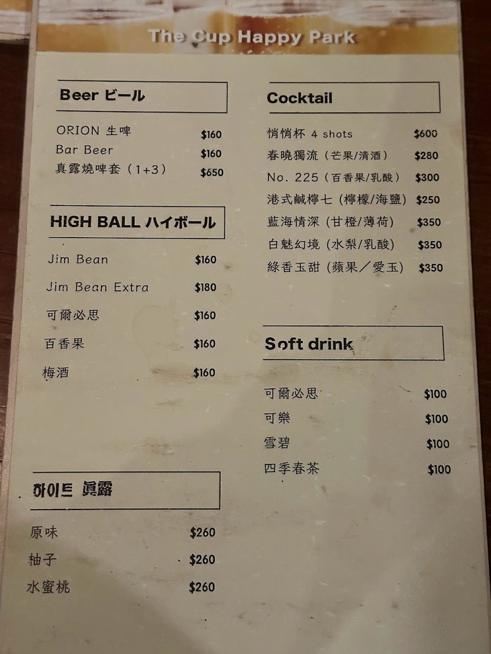 偏向台式居酒屋與微日式風格之間,菜色選擇不多,但食物都蠻好吃的普遍無雷,下酒菜口味偏重,首推龍田炸雞與蒜蓉千層豆皮,炸得很酥脆口感。單價有反應出地點方便,但以份量而言也相對蠻多的,CP值算起來也還不錯。