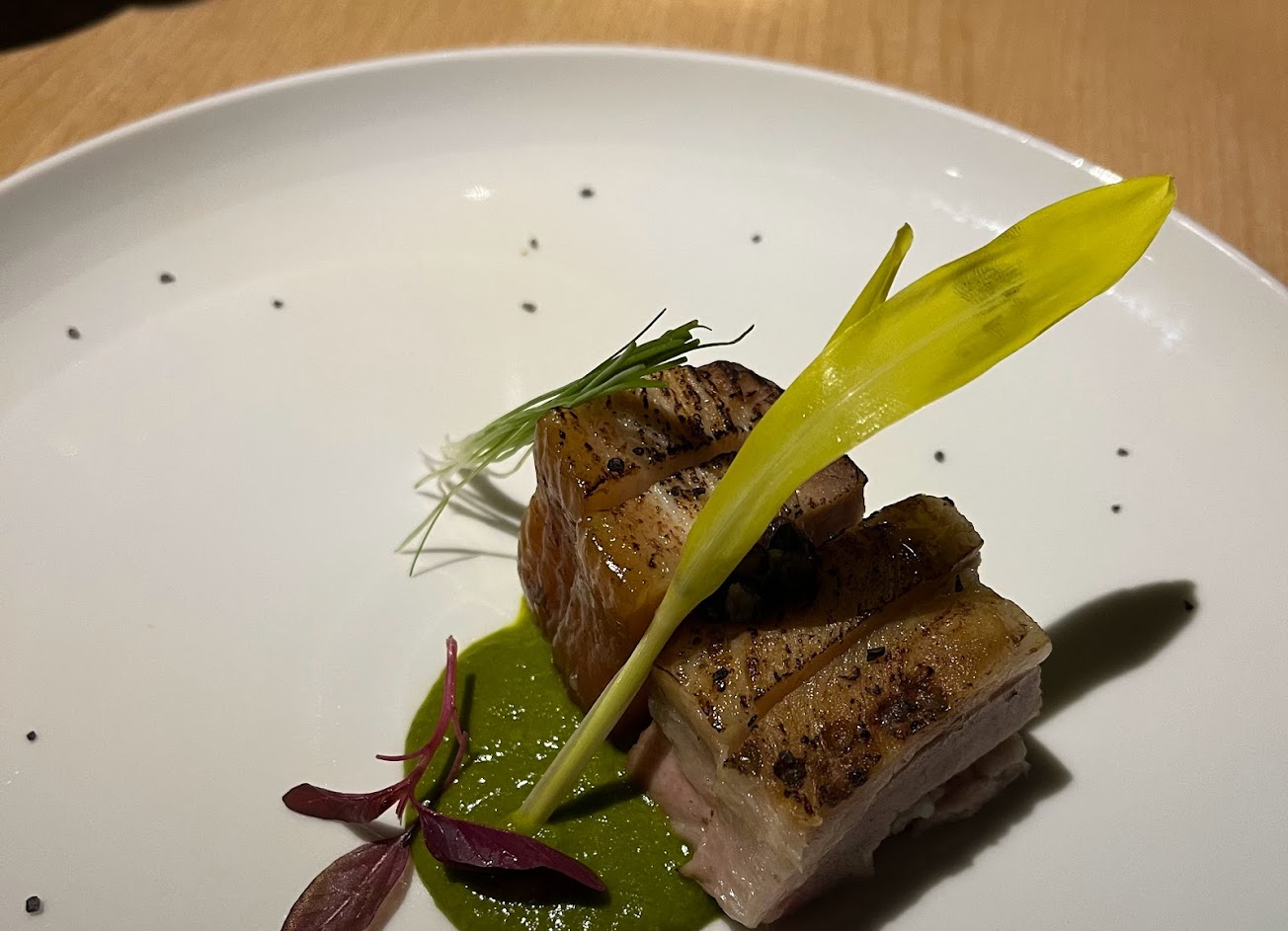 。舒肥豬五花 有馬山椒 蒜苗奶油 日本牙蔥