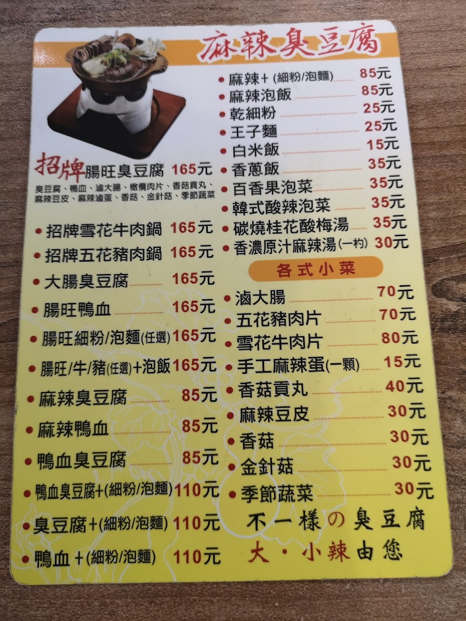 點最貴的綜合臭豆腐鴨血(150$) 裡面有甘藍肉片、香菇貢丸、高麗菜、金針菇、滷大腸,但飯要另外點 吃下來很膩,有點油、湯汁太濃滿滿的中藥味,沒有很香 男服務生態度不錯? …