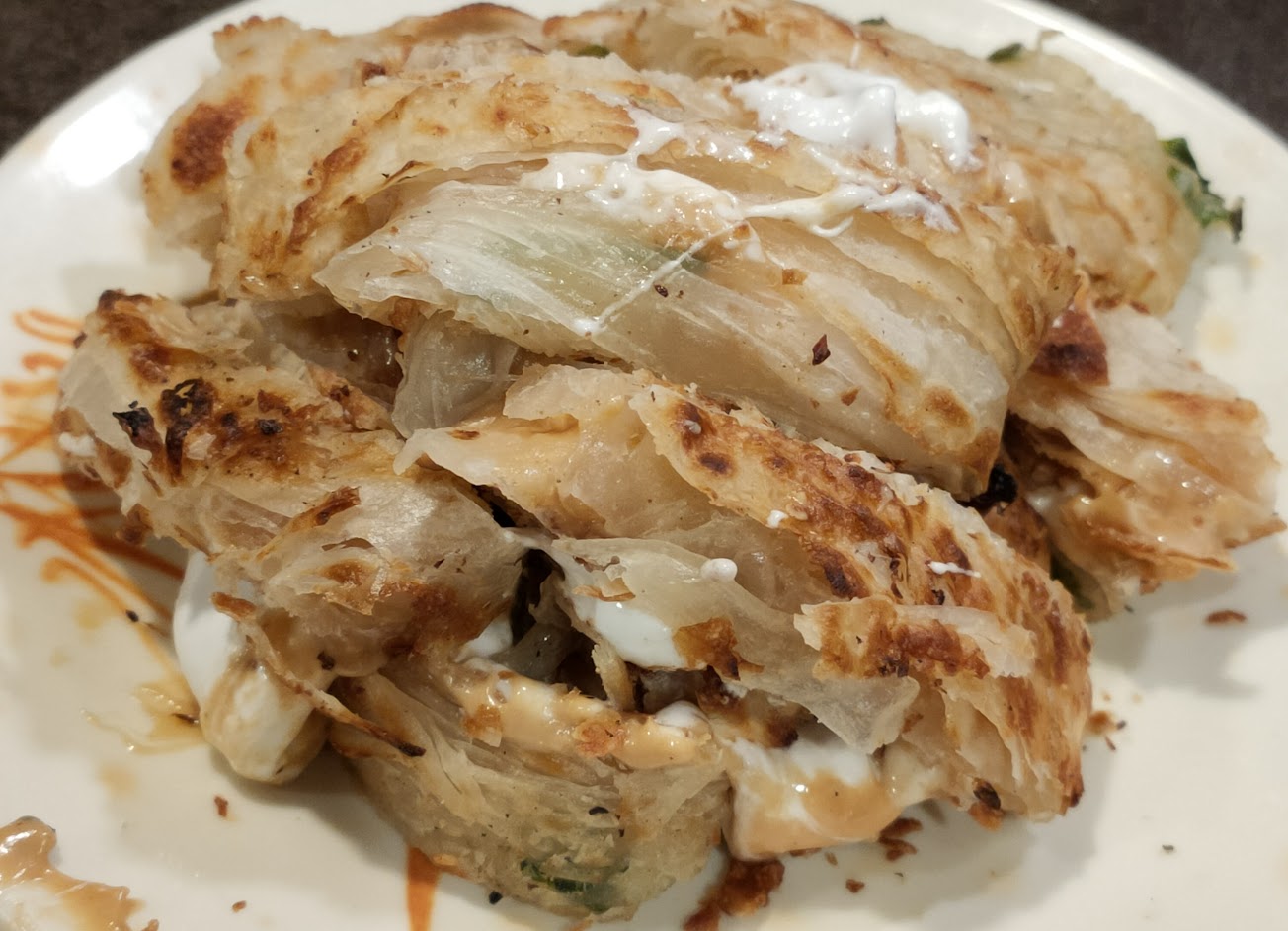 然後她說這是他第一次烤蔥抓餅沒有烤焦